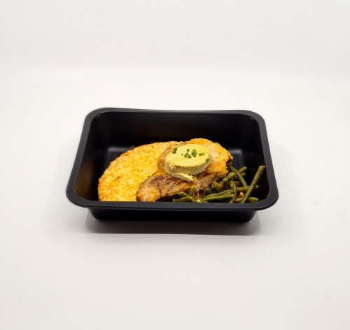Côtelette de porc CH beurre café de Paris, rosti, haricots verts