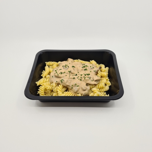 Pojarski de veau CH sauce poivre rose, pâtes